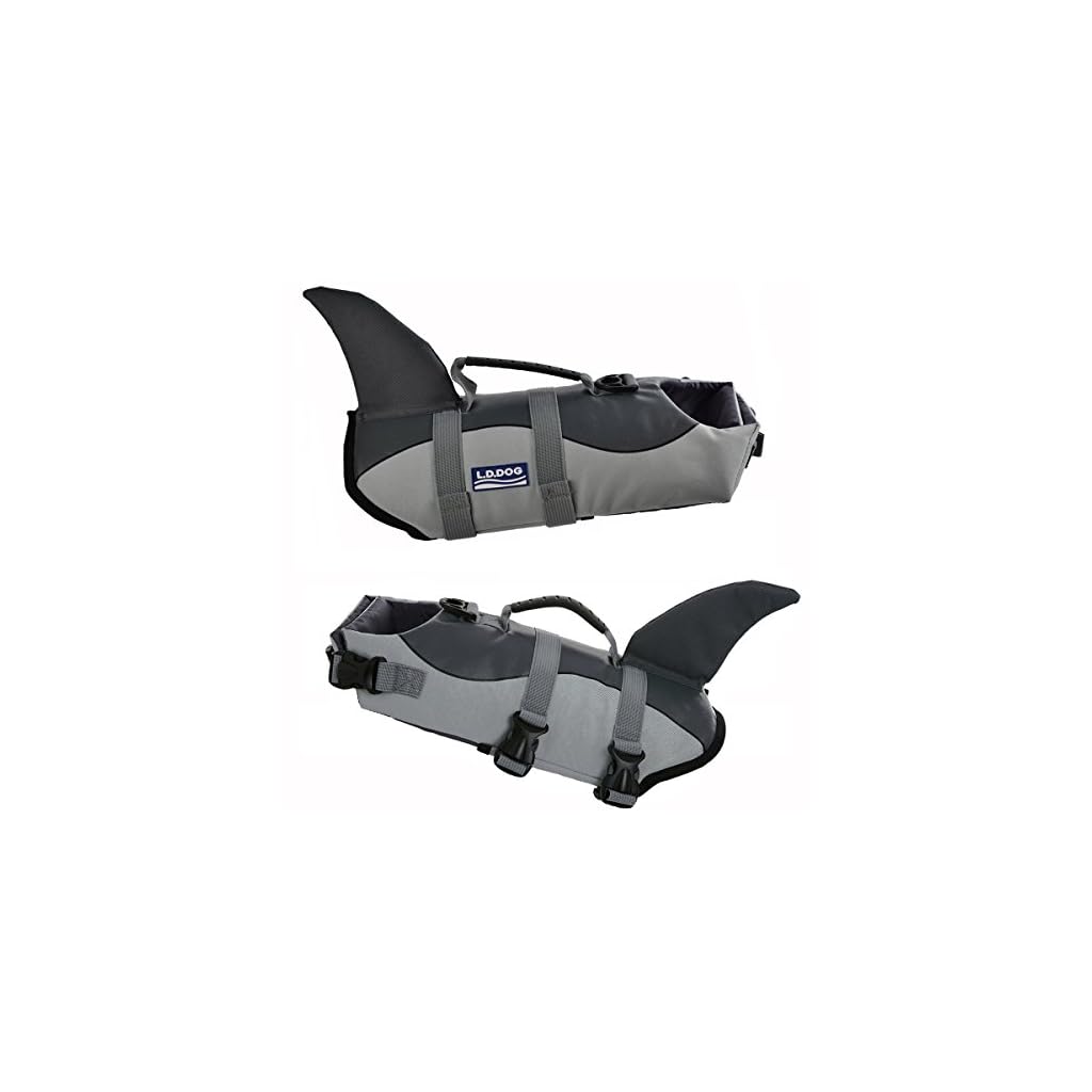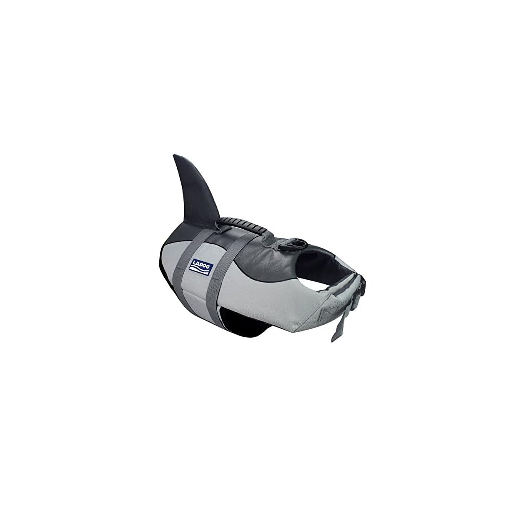 Aokay Hundeschwimmweste Hai,Größenverstellbarer Rettungswest für Hunde mit robustem Griff (M, Grau)