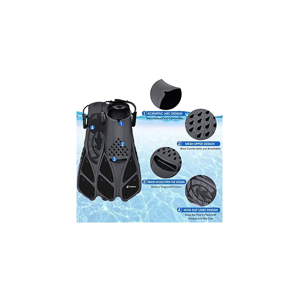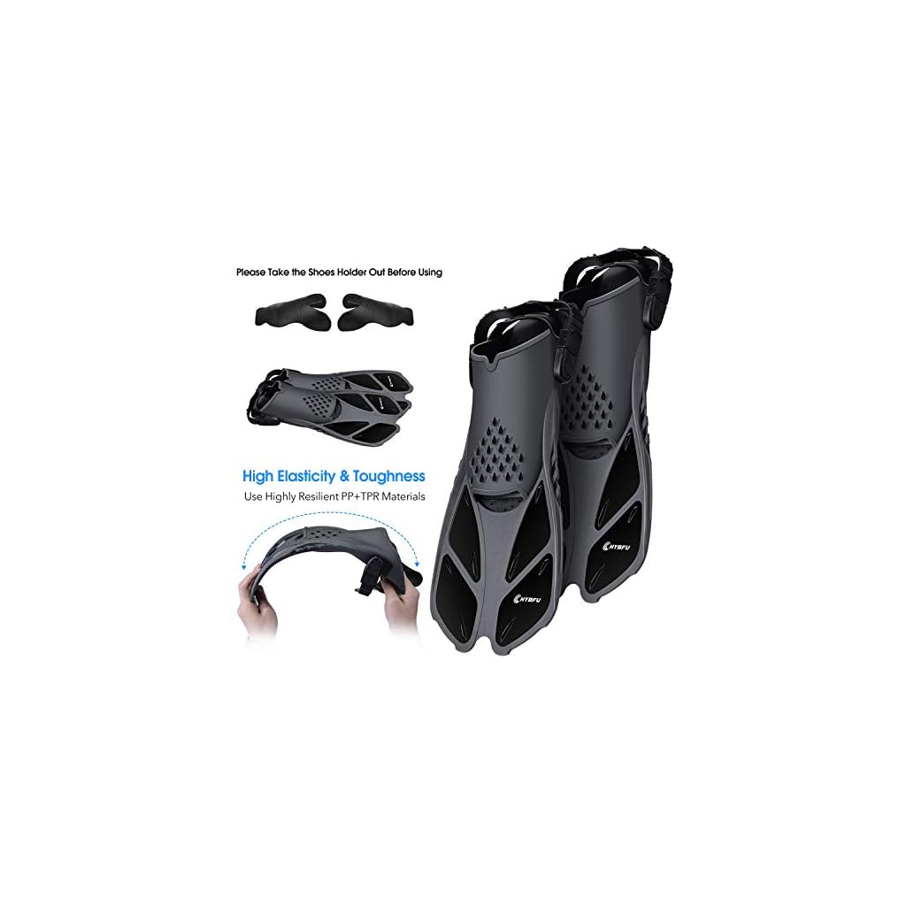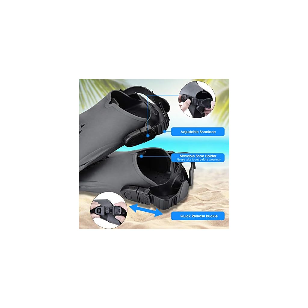 FLEXIBEL EINSTELLBAR SCHWIMMFLOSSE: Verbesserte Trekkingflossen aus hochwertigem PP + TPR, die Sie barfuß oder mit Flossensocken tragen können, um zusätzlichen Schutz zu bieten. Flexibel und rutschfest, um Krämpfe zu vermeiden und Ermüdungserscheinungen zu minimieren. Schnorchelflossen mit verstellbarem Design mit offenem Absatz, das an die meisten Menschen angepasst werden kann; Überprüfen Sie einfach unsere Größentabelle, um Ihre passende Größe zu finden