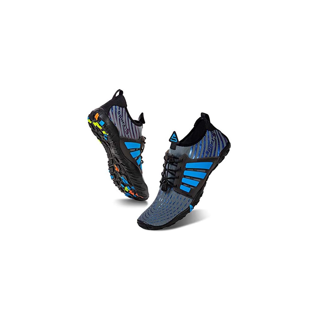 IceUnicorn Aquaschuhe Wasserschuhe Strandschuhe Badeschuhe Schwimmschuhe Damen Herren Sommer Schnell Trocknend Surfschuhe(933-Marine/Grau,44EU)