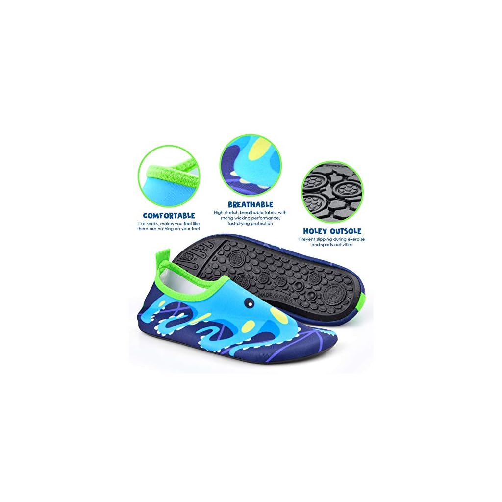 Jiamus Kinder Badeschuhe Wasserschuhe Schwimmschuhe Strandschuhe Aquaschuhe Schnell Trocknend Barfuss Schuhe für Jungen Mädchen Kleinkind Säugling Yoga Unisex Beach Pool,B,Blau Oktopus(26/27 EU)
