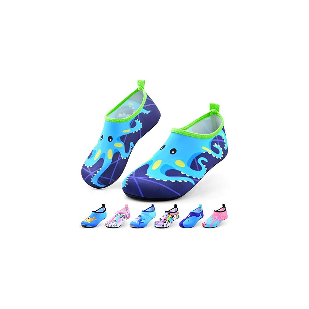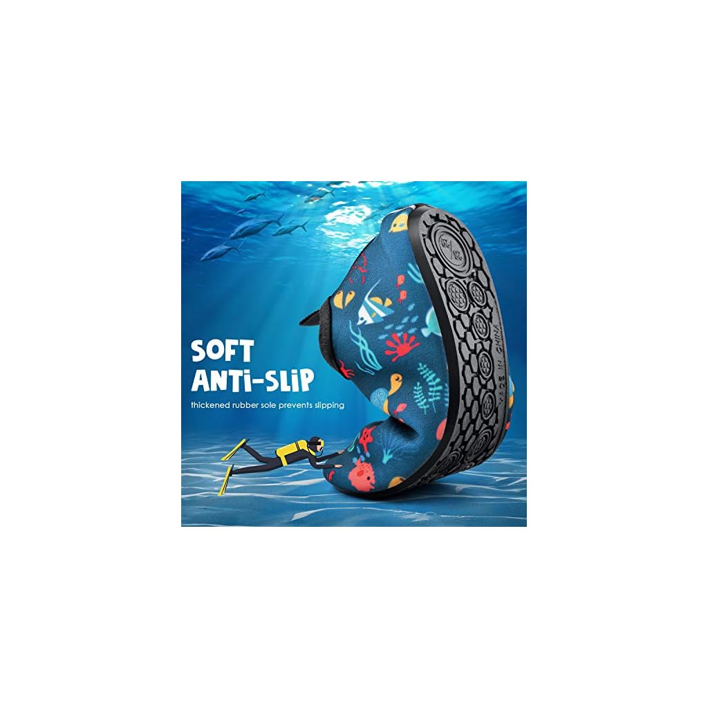 【Unterschiedlicher Stil und Größe】Kinder Schwimmschuhe sind super leicht und flexibel, eine Vielzahl von Stilen wie mehrere Drucke und bunt. Unsere Kinder Strandschuhe haben verschiedene Größen, die für Jungen, Mädchen, Kleinkinder, Kinder und Kleinkinder geeignet sind. Die Produktbeschreibung hat eine Größentabelle als Referenz.