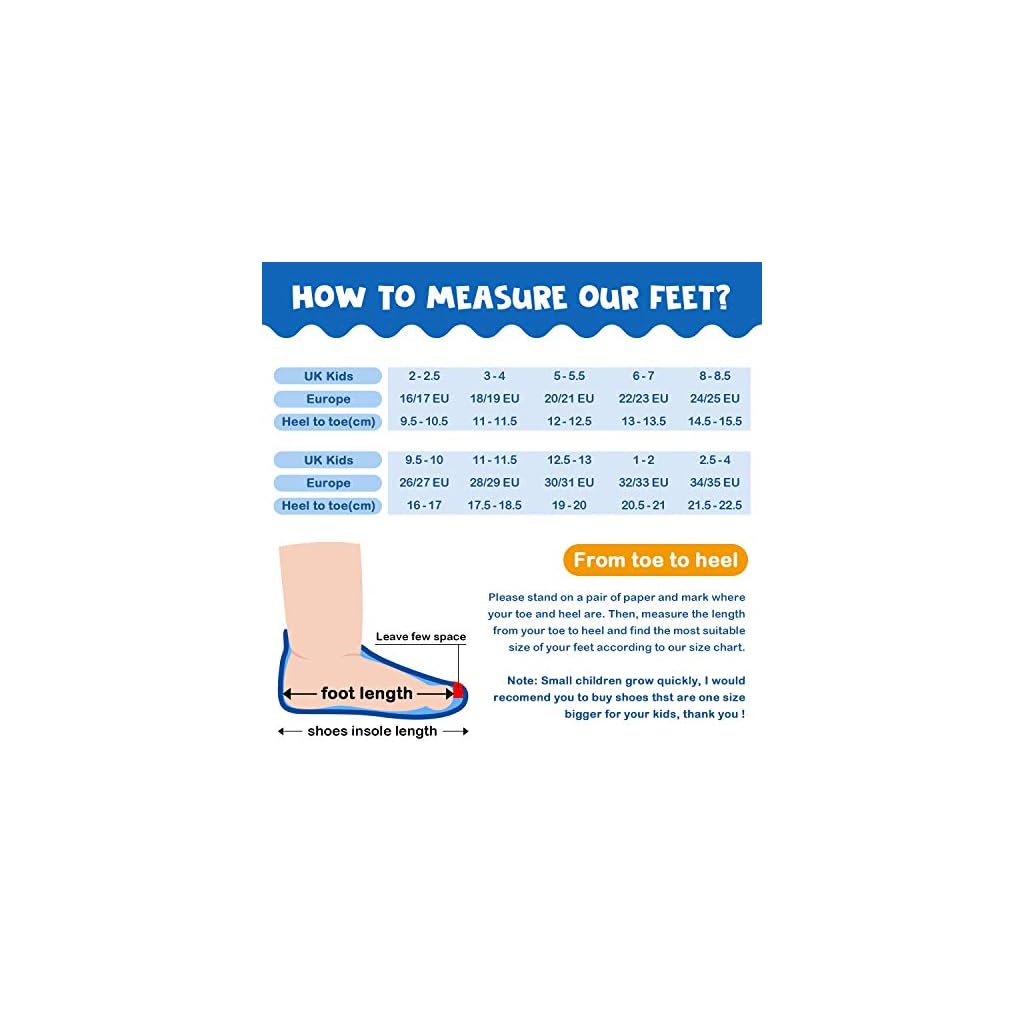 Sohle: Gummi.Kinder Schwimmschuhe ist super leicht und flexibel, eine Vielzahl von Stilen wie mehrere Drucke und bunt.Unsere Kinder Strandschuhe haben verschiedene Größen geeignet für Jungen, Mädchen, Kleinkinder, Kinder und Kleinkinder.Die Produktbeschreibung hat als Referenz eine Größentabelle.