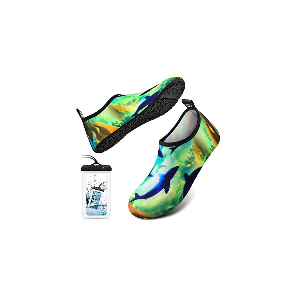 Jiamus Schwimmschuhe Damen Herren Strandschuhe Surfschuhe Aquaschuhe Barfuß Badeschuhe Wasserschuhe für Wassersport Beach Pool Surfen Yoga,Unterseeischer Hai(43/44EU Herstellergröße 44/45)