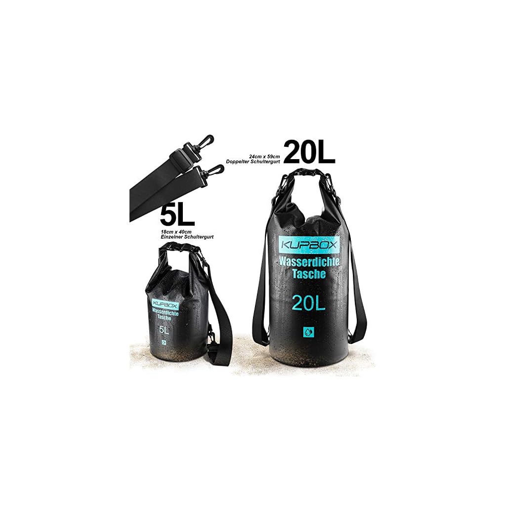 KUPBOX Dry Bag 5L, wasserdichte Tasche mit Verstellbarem Gurt, Dry Bag,100% wasserdichte Packsäcke für Wassersport,Boot Kajak, Angeln, Rafting,Camping usw.Mehrweg-Verpackung. (schwarz, 5L)