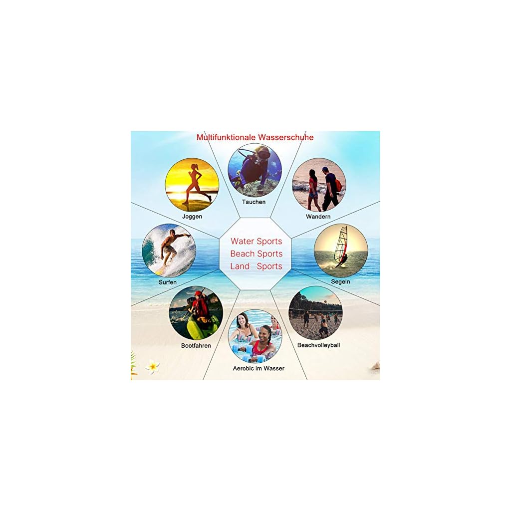 Die Sohle besteht aus einem Gummimaterial mit hervorragender Atmungsaktivität und rutschfesten Eigenschaften. Guten Griff haben, um ein Abrutschen zu verhindern. Das Obermaterial besteht aus atmungsaktivem und elastischem Lycra-Material, das eine gute Atmungsaktivität aufweist und schnell trocknet.