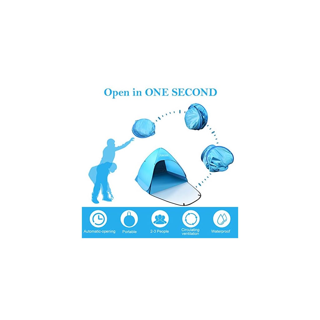 POP UP DESIGN und PORTABILITÄT: Werfen Sie einfach Ihr Strandzelt weg, es erscheint automatisch in Sekunden. Offene Größe: 140 x 140 x 140 cm (L x B x H). Das Zusammenklappen ist so einfach, dass Sie Zeit und Energie sparen können. Faltgröße: 46 x 46 x 2 cm (L x B x H). Leicht, nur 2.5 lbs mit flacher, kompakter, kleiner Tragegröße, passt in Koffer für den einfachen Transport mit dem Auto oder Flugzeug.