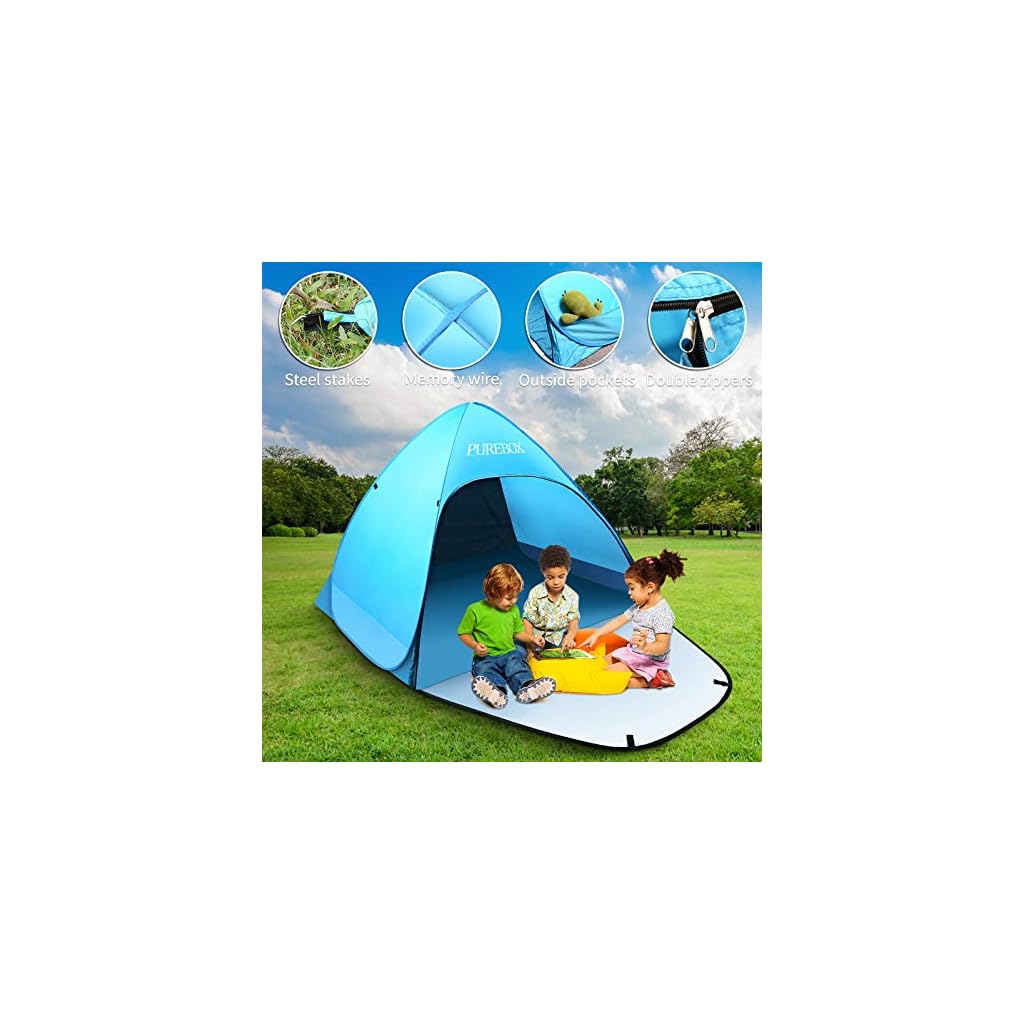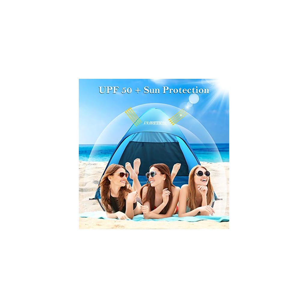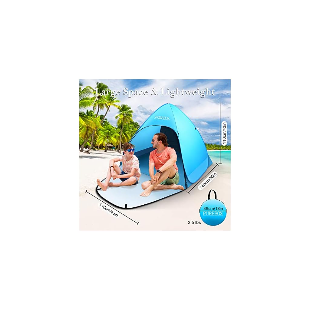 Purebox Pop Up Strandmuschel, tragbares Strandzelt – UV-Schutz 50+, 1-3 Personen Modelle, Dual Zip Design, leichtes Garten Grill Wanderzelt für die Familie 180 x 140 x 110 cm