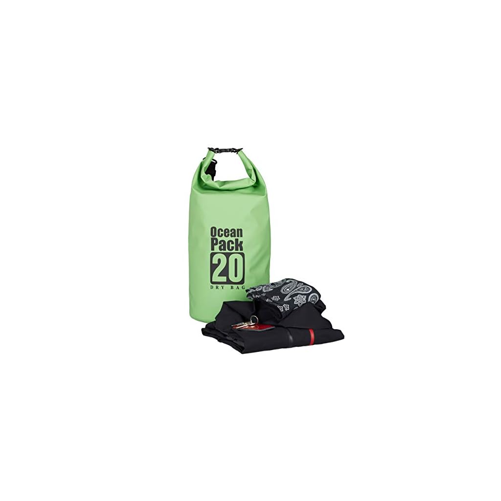 Relaxdays Ocean Pack, 20L, wasserdicht, Packsack, leichter Dry Bag, Trockentasche, Segeln, Ski, Snowboarden, grün