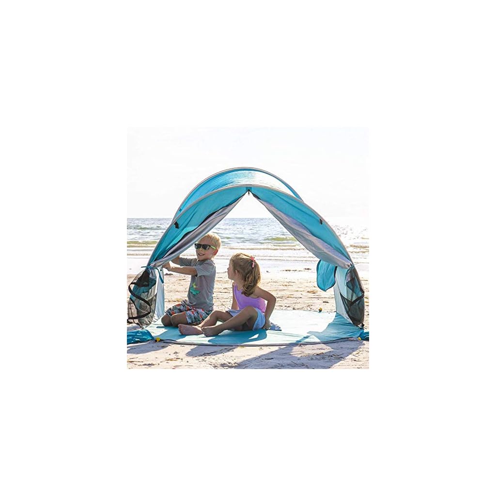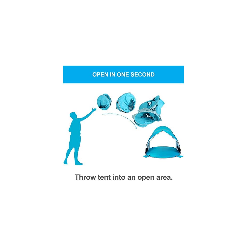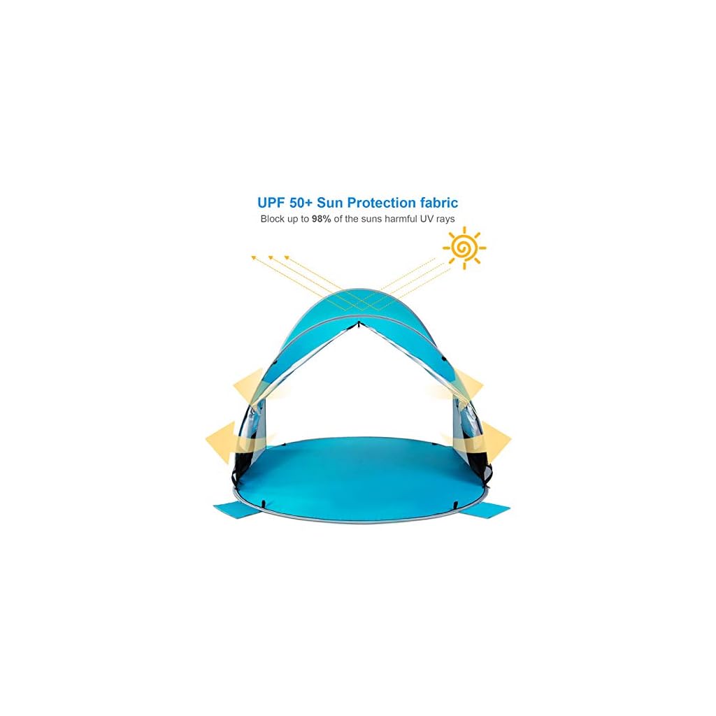 UPF 50+ & Wasserabweisend: Wasserabweisendes Polyester mit Klebebandnähten, um Innere trocken zu halten. Die silberne Zeltoberfläche reflektiert und absorbiert Sonnenlicht, blockiert bis zu 98% der schädlichen UV-Strahlen der Sonne und schützt Sie vor UV-Strahlen.