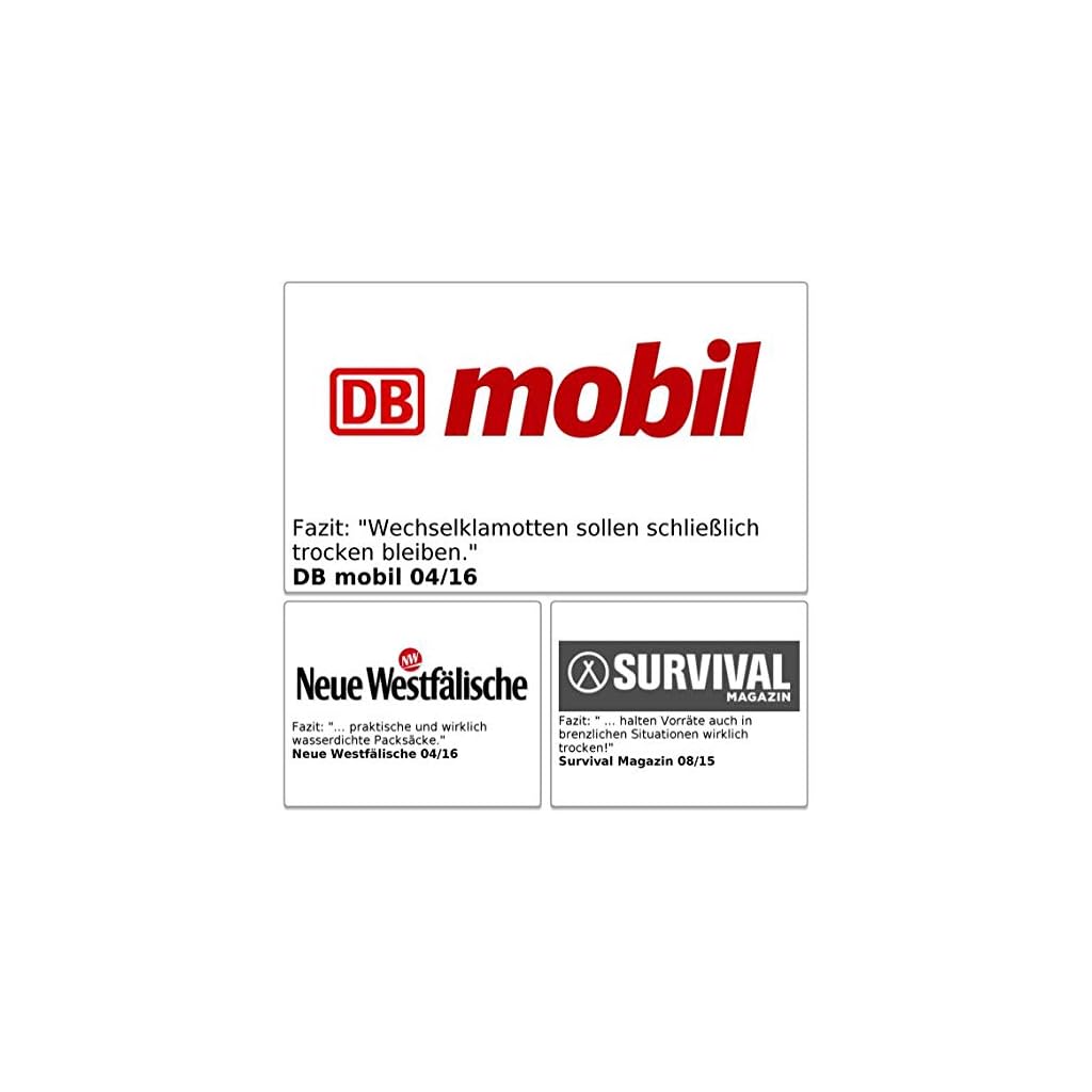 Neue Westfälische (04/16): Fazit: „… praktische und wirklich wasserdichte Packsäcke.“.